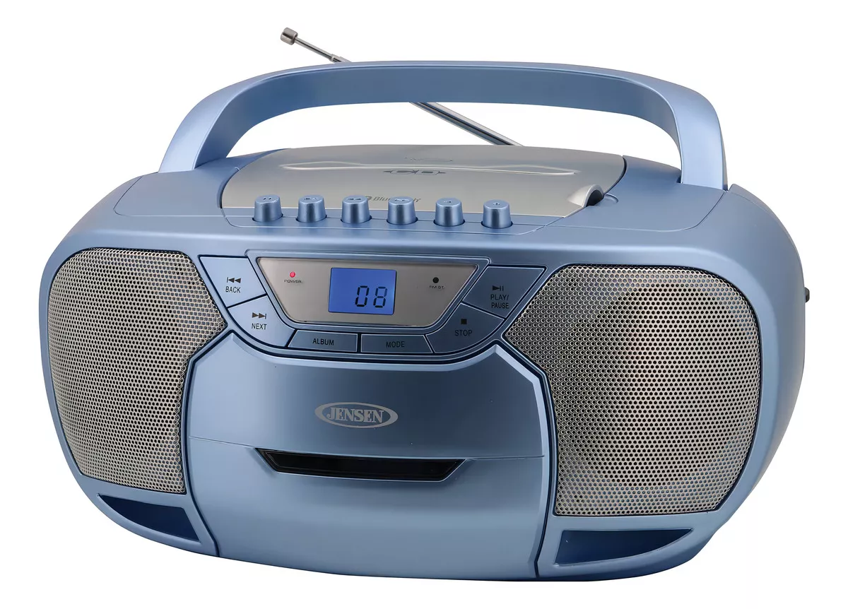Jensen Cd-590-bl Cd-590 Reproductor De Cd Y Casete Portátil De 1 W Con Radio Am/fm Y Bluetooth (azul)
