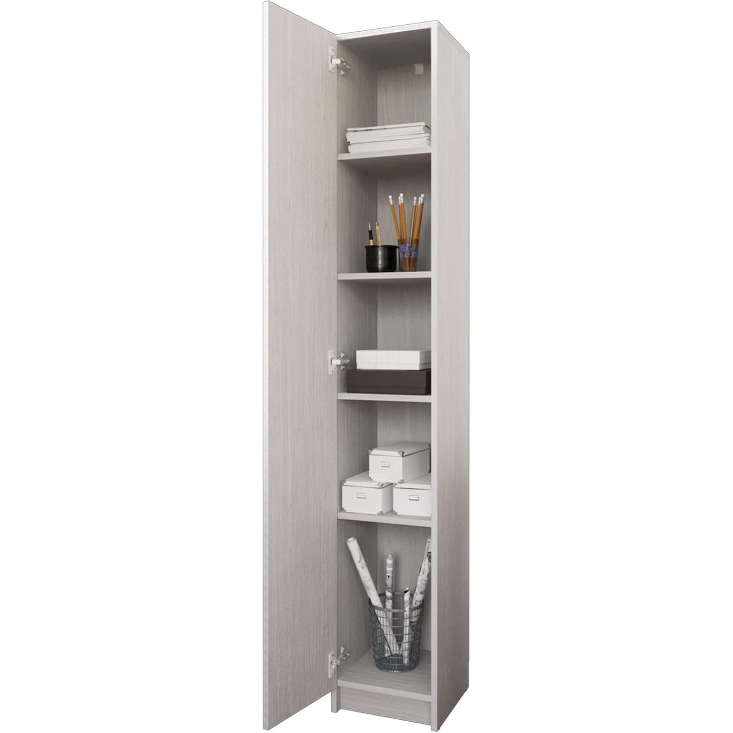 Gabinete Alacena Guardarropa Estante con Puerta 5 Espacios Organizadores Gabinete para Blancos, Despensa (Roble)