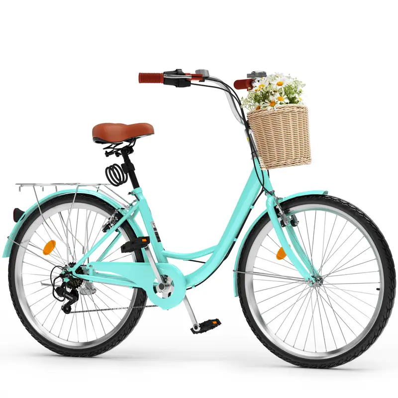 Bicicleta de paseo para mujer Balconera, bicicleta de cercanías de 24 y 26 pulgadas para adultos, bicicleta para mujer de 1 y 7 velocidades con cesta, asiento ajustable, varios colores