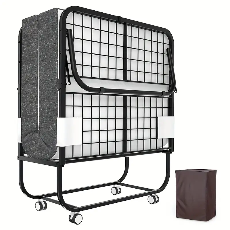 Cama plegable, cama plegable con colchón para adultos, funda de almacenamiento incluida, cama de invitados extra grande, cama plegable con colchón de espuma viscoelástica y estructura de metal resistente sobre ruedas - 75" x 31"