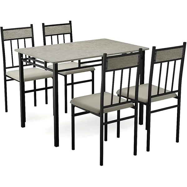 Comedor de cocina de 5 piezas, moderno, incluye 1 mesa rectangular con respaldo alto y 4 sillas