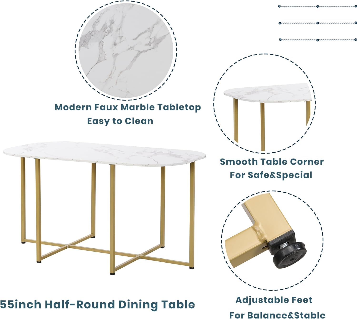 - Elegante juego de comedor de 7 piezas: este elegante juego de comedor incluye seis cómodas sillas y una mesa de 55 pulgadas con una forma semicircular única, que ofrece una mezcla perfecta de diseño moderno y funcionalidad. Eleva tu espacio de comedor con su opulenta mesa aerodinámica y sillas, mejorando sin esfuerzo tu experiencia gastronómica.