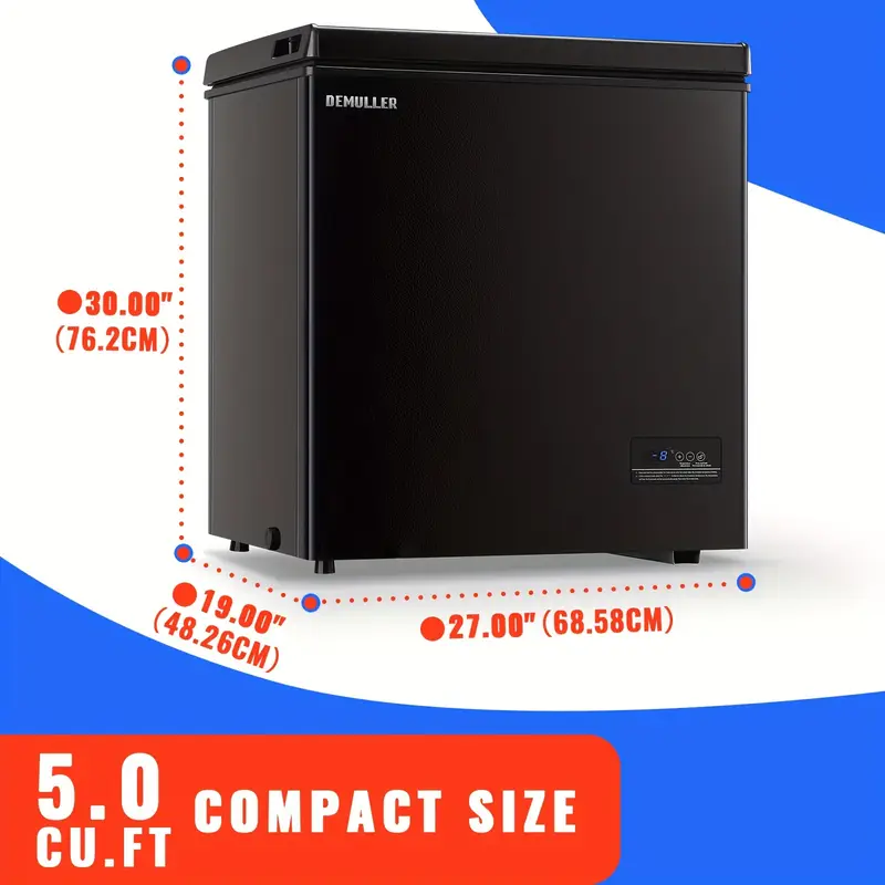 Tamaño compacto: El congelador compacto cabe en cualquier lugar (incluso en rincones pequeños). El congelador mide 27" x 19" x 30" y ocupa wika solo 0.33 metros cuadrados. La capacidad del congelador puede satisfacer el almacenamiento diario de alimentos de la familia.