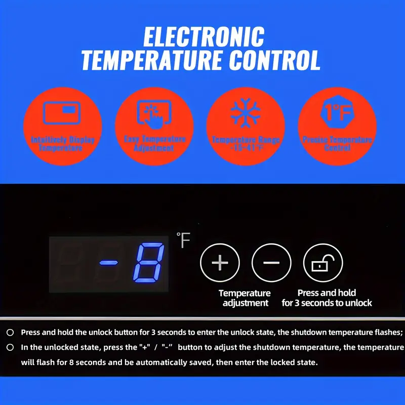 Temperatura precisa: Nuestro congelador tiene una pantalla electrónica que puede mostrar la temperatura de refrigeración de forma muy intuitiva. El rango de temperatura del congelador es de -12 F a 50 F, por lo que puede personalizar la temperatura que sea adecuada para la conservación de los alimentos.