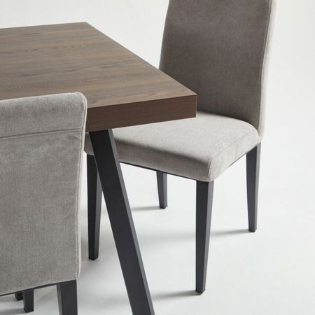 Material Mesa de Comedor Mateo: MDXF + Melamina Silla de Comedor Olivia Gris: Metal + Madera