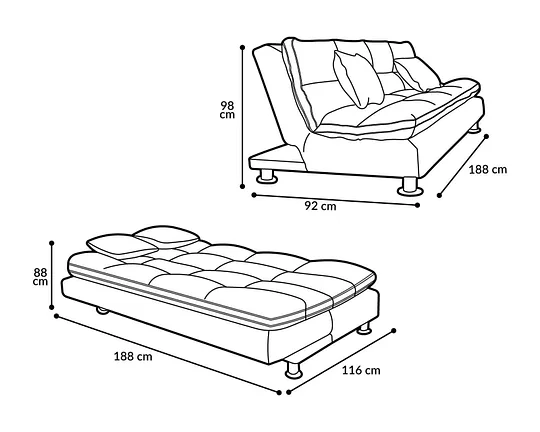 • Medidas (largo x ancho x alto):180 x 92 x 88 cm