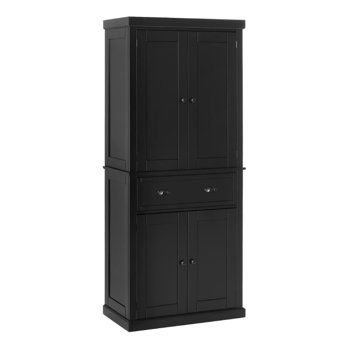 • Solución de almacenamiento versátil: cuenta con un solo cajón central con puertas superiores e inferiores que se abren a 1 estante fijo y 2 estantes totalmente ajustables, el organizador de despensa permite un espacio de almacenamiento flexible que se adapta a sus necesidades individuales.