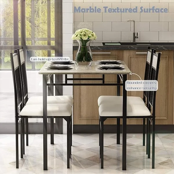 Comedor de cocina de 5 piezas, moderno, incluye 1 mesa rectangular con respaldo alto y 4 sillas