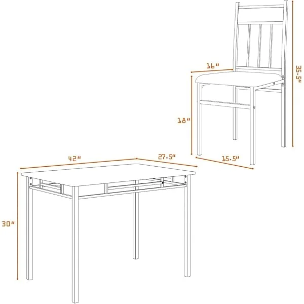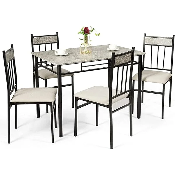 Juego de comedor de cocina de 5 piezas, moderno, incluye 1 mesa rectangular con cuatro sillas y respaldo alto, 42 x 27,5 x 30 pulgadas, 15,5 x 18 x 35,5 pulgadas, gris