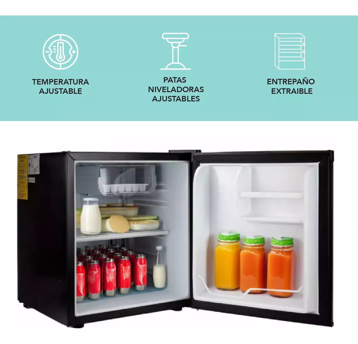 Capacidad de almacenamiento: A pesar de su tamaño reducido, un frigobar mini de 1.6 pies cúbicos ofrece suficiente espacio para almacenar una variedad de alimentos y bebidas, incluyendo snacks, bebidas enlatadas, productos lácteos y algunos alimentos congelados.