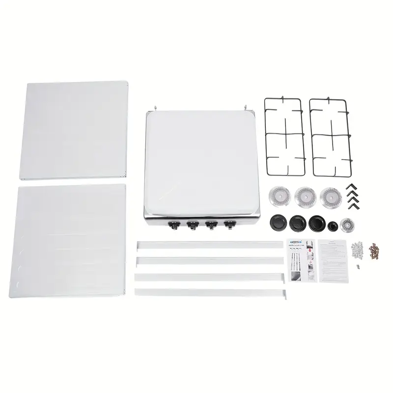 Funcionalidad básica: Con cuatro perillas giratorias, puede encender manualmente la estufa de gas y girarlas hacia la izquierda o hacia la derecha para cambiar la intensidad de la llama, lo que la hace fácil de usar y capaz de satisfacer diversas necesidades de calor para cocinar. También está disponible un manual en inglés para su orientación.