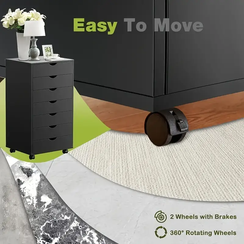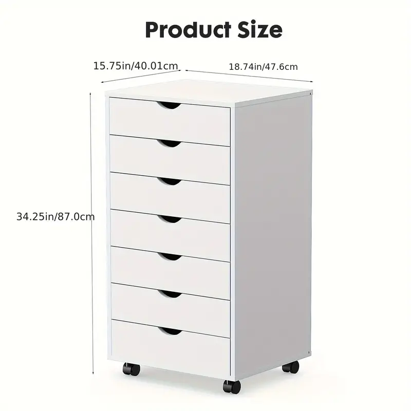 Almacén localMueble blanco de madera con 7 cajones y ruedas, diseño clásico, funcionamiento suave para almacenamiento en casa, oficina, dormitorio o sala de estar, 34.25x15.75x18.74 pulgadas