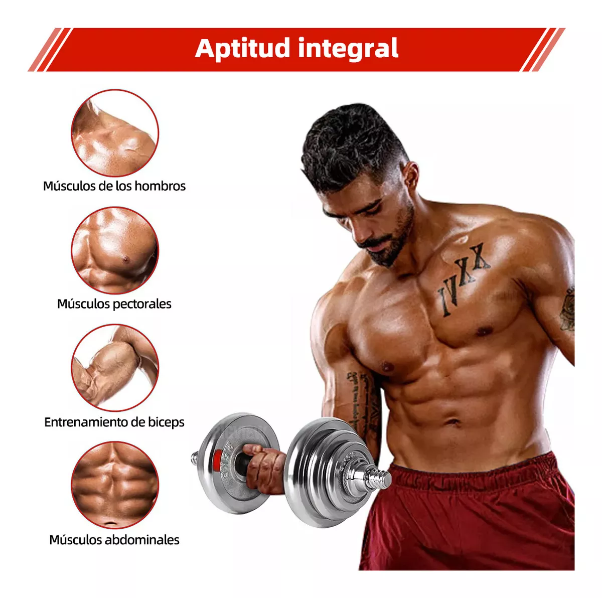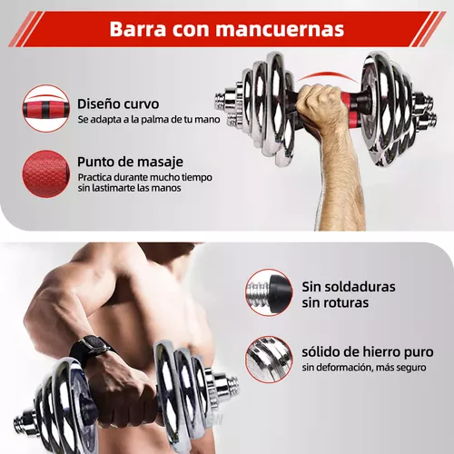 Este Kit De Pesas Gym Set Juego De Mancuernas Ajustable Ejercicio de la marca Bigview es ideal para tu rutina de entrenamiento en casa. Con un peso de 20 kg y recubrimiento de electroplating coating, wika te brinda durabilidad y resistencia. Sus mangos ergonómicos y antideslizantes garantizan un agarre cómodo y seguro durante tus ejercicios. Además, su diseño redondo y ajustable lo hace perfecto para cualquier tipo de ejercicio de fuerza. Aprovecha esta oportunidad para mejorar tu entrenamiento y alcanzar tus metas fitness.