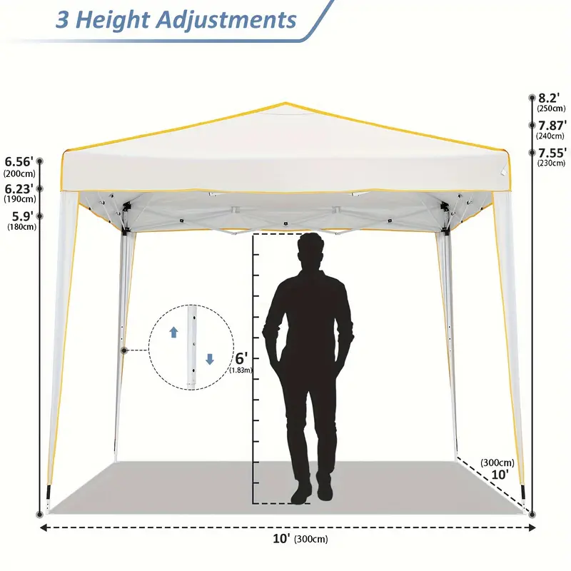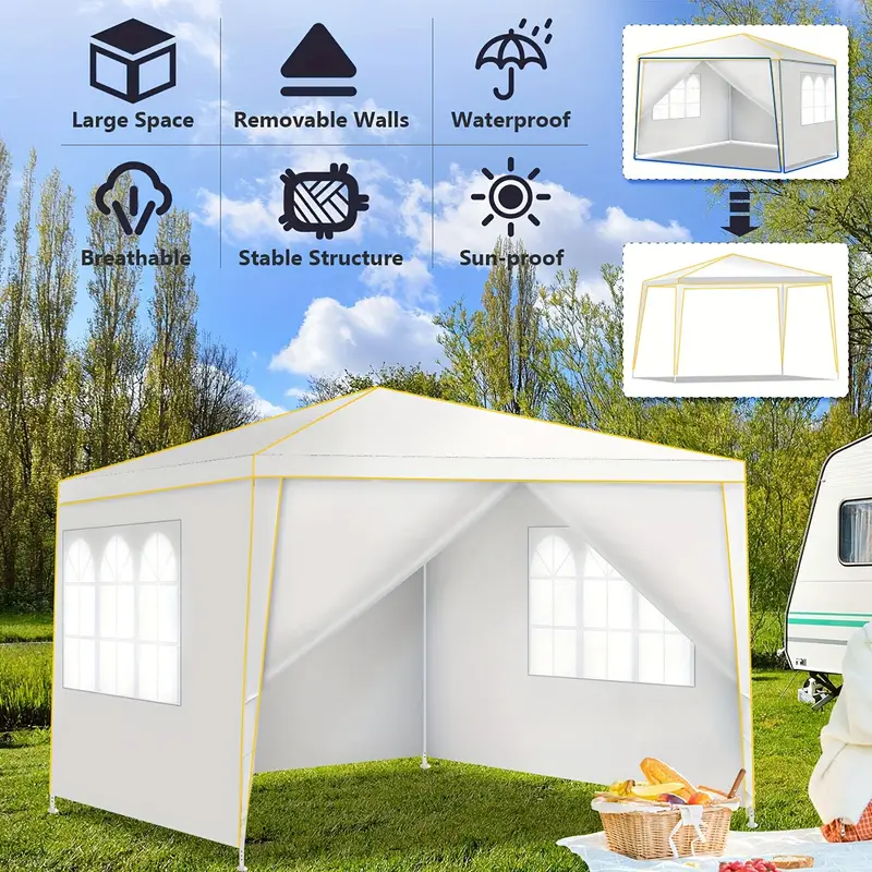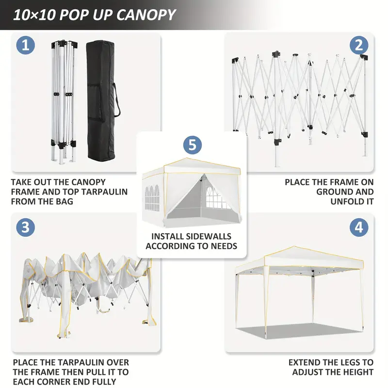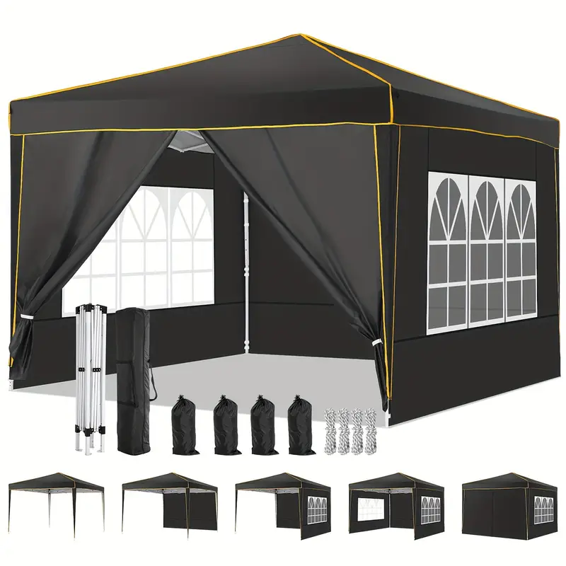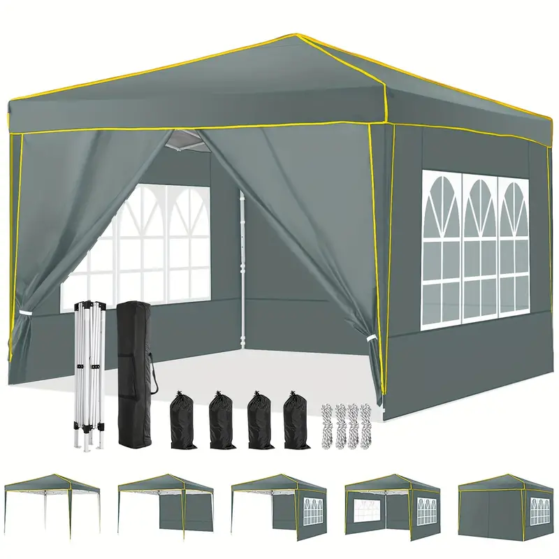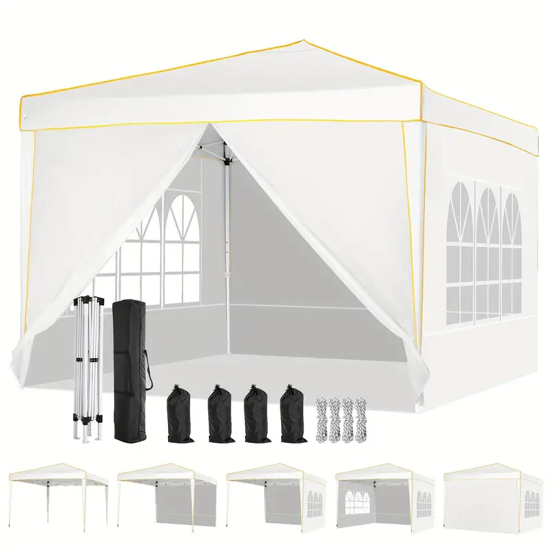 Carpa emergente de 10x10 con 4 paredes laterales desmontables, carpa de 10x10 para fiestas impermeable para eventos de bodas, gazebos al aire libre instantáneos con ventana de iglesia, bolsa de transporte, estacas, cuerdas y sacos de arena