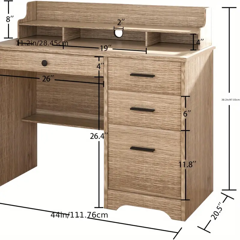 Escritorio de computadora con cajones y armario auxiliar, escritorios de oficina en casa de estilo rústico con cajones de almacenamiento y estante inferior, estación de trabajo para computadora portátil de PC, mesa de computadora de madera