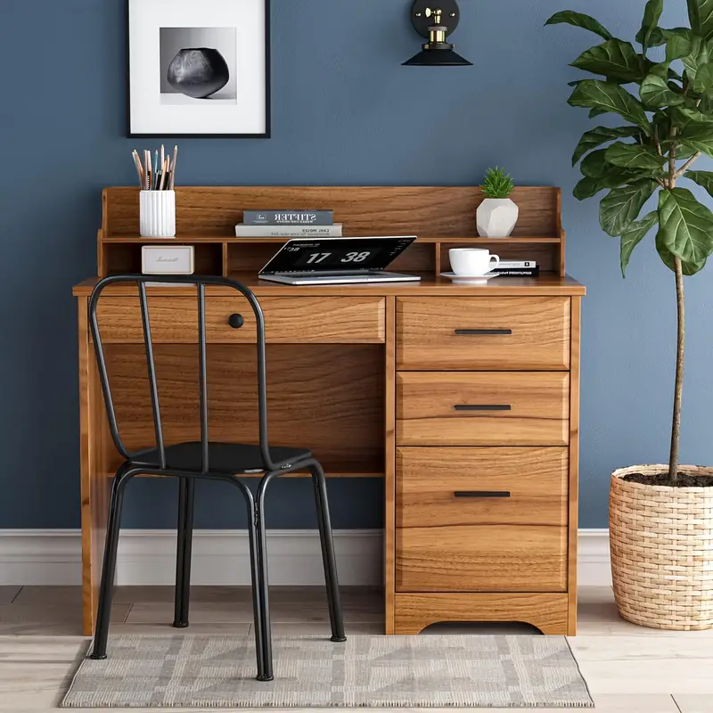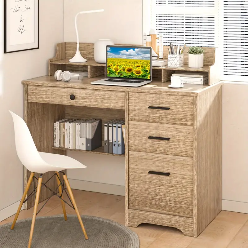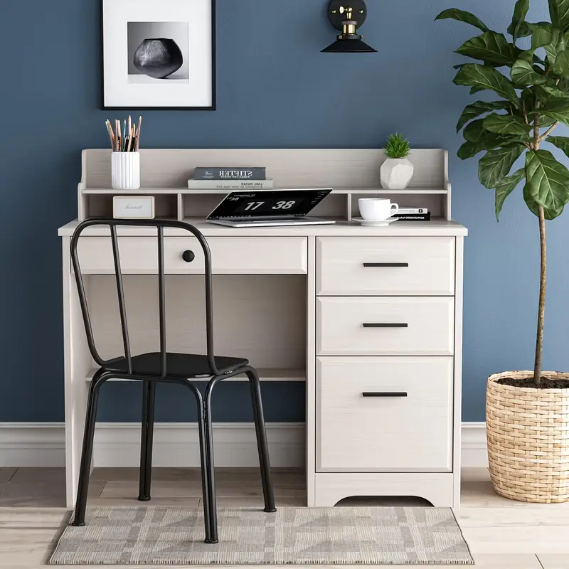 wEscritorio de computadora con cajones y   auxiliar, escritorios de     de     con cajones de almacenamiento y estante inferior, estación de     computadora portátil de PC, mesa de computadora de  , escritorio de     dormitorio detalles 0