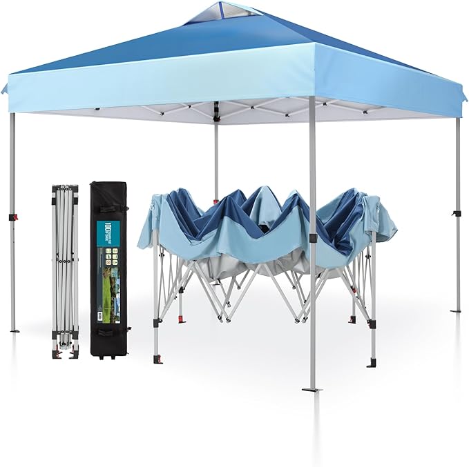 • Fácil instalación para una persona: el tamaño ensamblado es de 10 x 10 pies, simplemente pulsa el botón en la pierna para ajustar. Fácil de instalar con marco de acero plegable y fácil de quitar con bolsa de transporte con ruedas (pesa solo 26 libras). Toldo PHI VILLA diseñado para que dos personas puedan instalarlo en segundos sin necesidad de herramientas.