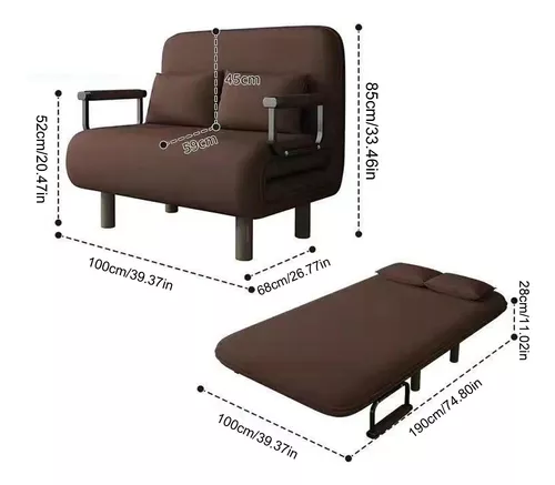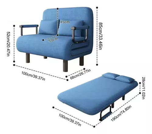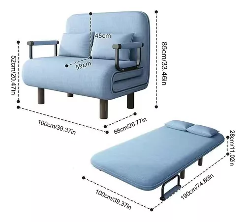 [Dimensiones del producto]: cuando está plegado como sofá, mide 100 cm de largo y 85 cm de alto. Cuando se expande hasta convertirse en una cama, mide 190 cm de largo, 28 cm de alto y 100 cm de ancho.