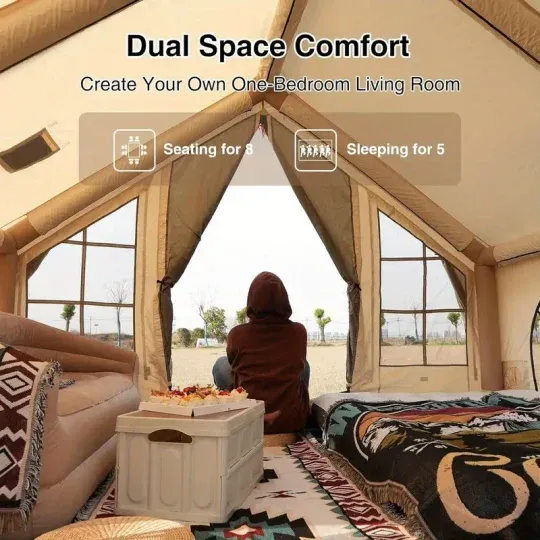 Tienda inflable para acampar 5~8 personas Gran carpa inflable para casa, sin necesidad de montaje Tienda de glamping de lujo, 10x10 pies