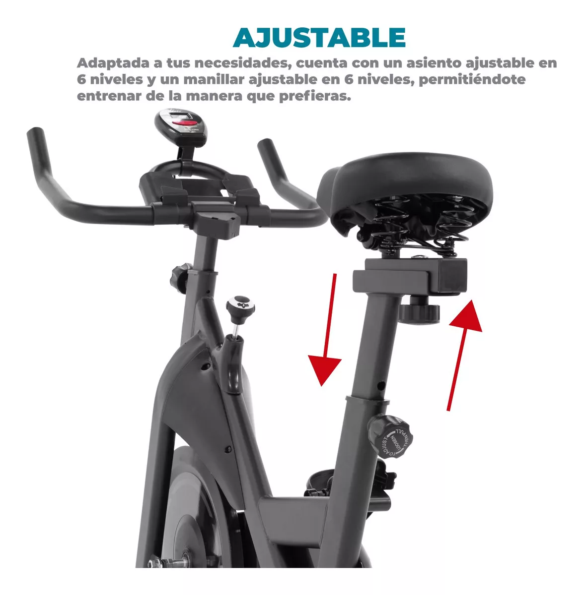 AJUSTABLE: Adaptada a tus necesidades, cuenta con un asiento ajustable en 6 niveles y un manillar ajustable en 6 niveles, permitiéndote entrenar de la manera que prefieras.