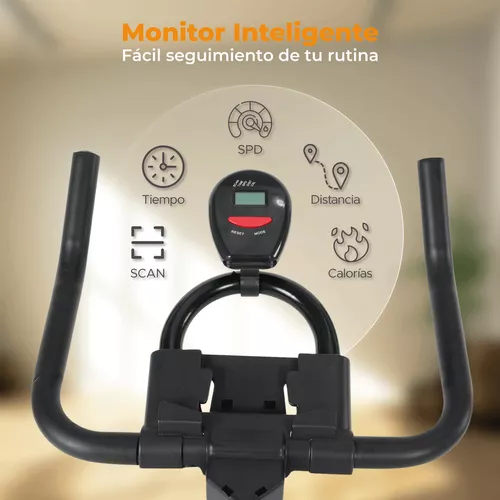 Bicicleta de spinning con monitor: Monitorea tu progreso y ajusta tu entrenamiento según tus necesidades con el monitor integrado. Mide distancia, velocidad y tiempo para un seguimiento detallado.