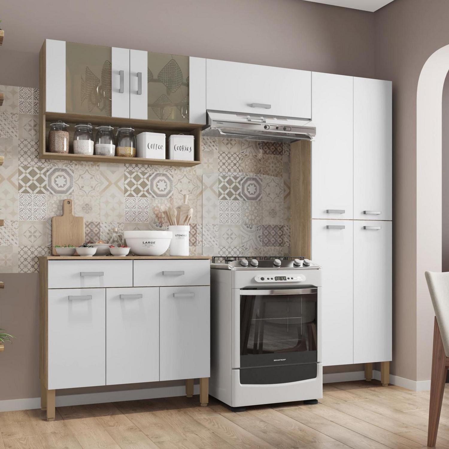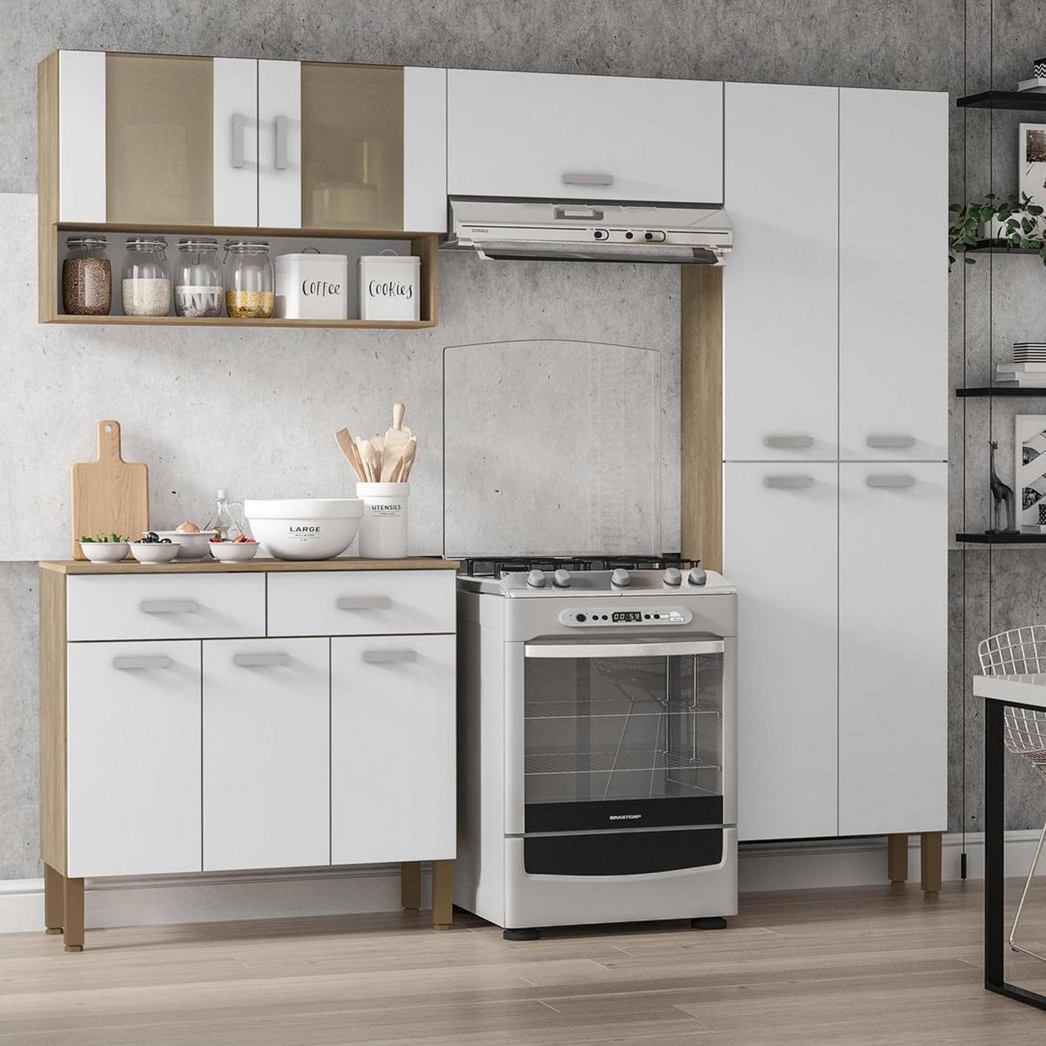 Dale un toque moderno y funcional a tu cocina con el Kit Mueble Cocina New Quartz Nogal White. Este kit te ofrece un diseño elegante y práctico, con un acabado en nogal y blanco que se adapta a cualquier estilo. Con sus amplios espacios de almacenamiento, podrás organizar tus utensilios y vajilla de forma eficiente. ¡No pierdas la oportunidad de tener una cocina moderna y organizada con este kit de cocina!