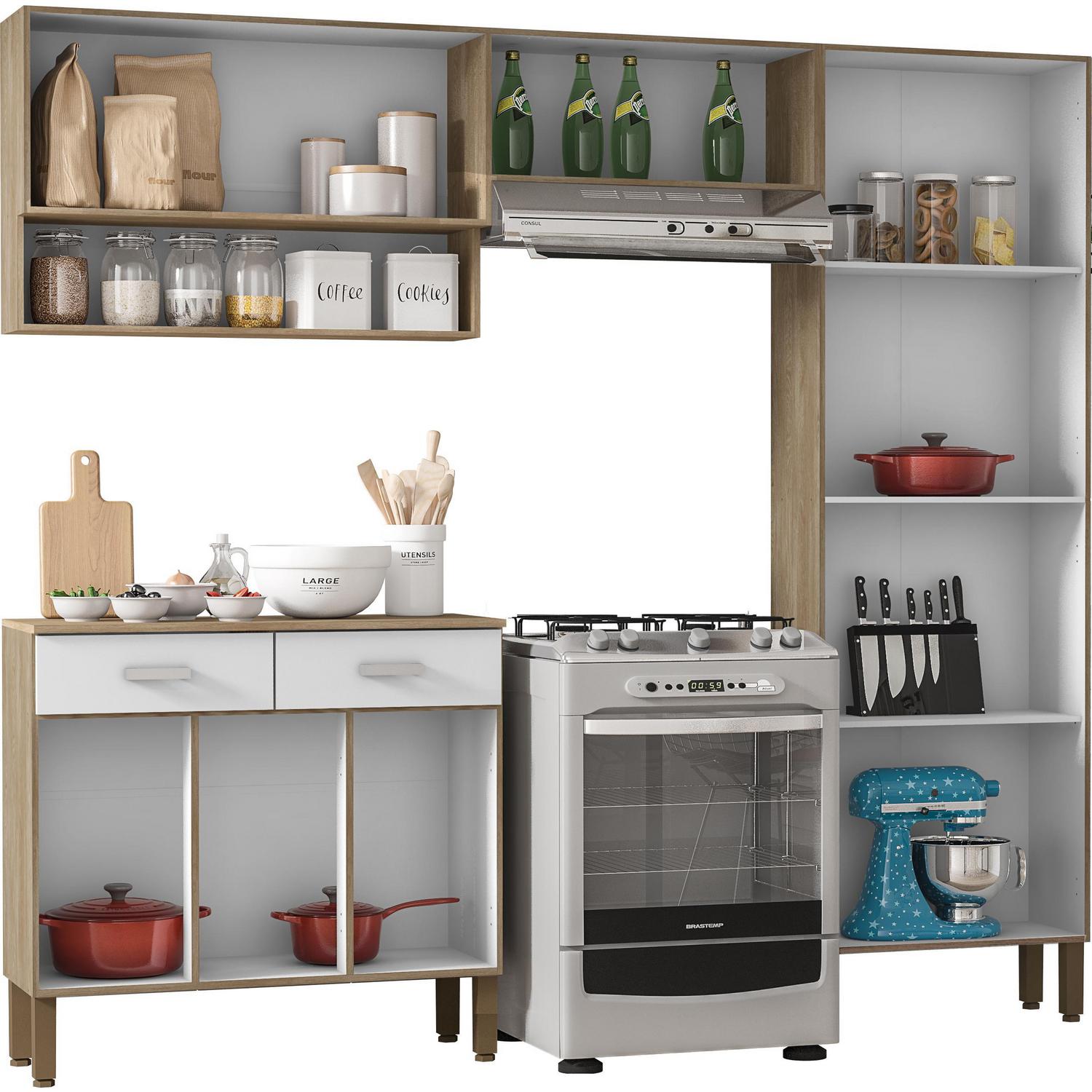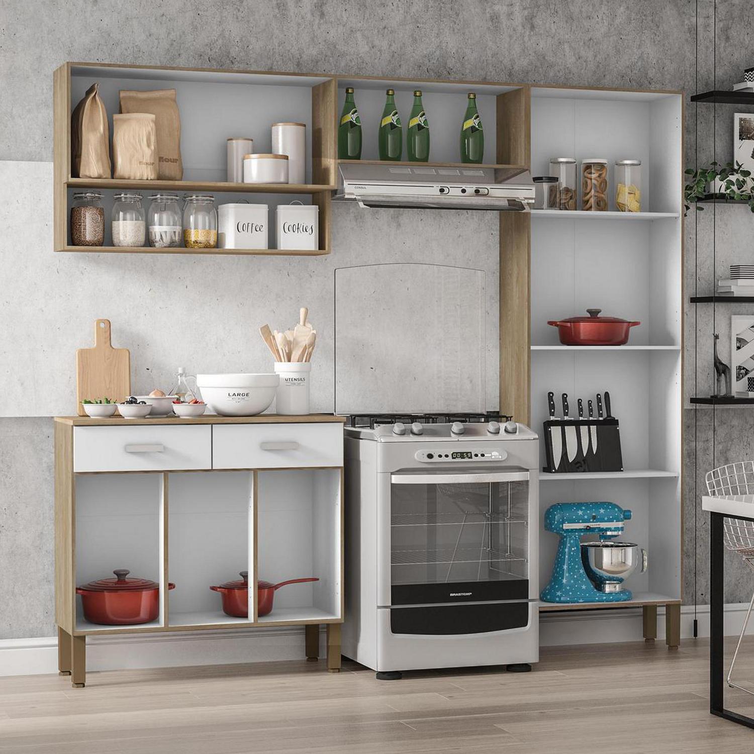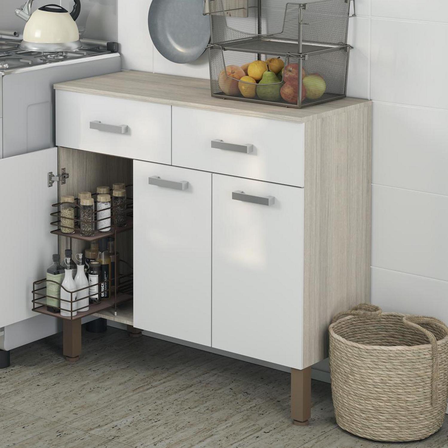 El Kit Mueble Cocina New Quartz Nogal White está fabricado en MDF, lo que lo hace estable, durable y fácil de limpiar. Su diseño incluye 2 cajones y 10 puertas, con bisagras de metal y tiradores de plástico. Además, cuenta con una cubierta de 12 mm de espesor y puertas de 15 mm de espesor, lo que garantiza su resistencia. El kit viene con un manual de armado y accesorios para que puedas instalarlo sin problemas. ¡Disfruta de una cocina moderna y funcional con este kit de cocina!