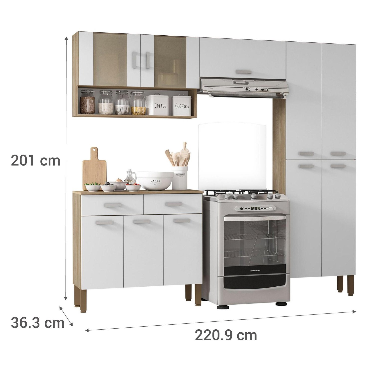 Kit mueble cocina new quartz nogal white 220x201x36 cm
