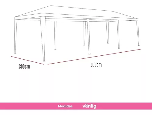 Este toldo no es a prueba de nieve, pero sí es a prueba de agua, lo que significa que podrás disfrutar de tus fiestas sin importar las condiciones climáticas. Su modelo de 9x3 metros te ofrece un amplio espacio para tus invitados, con una altura de 2.7 metros que permite una circulación de aire adecuada.