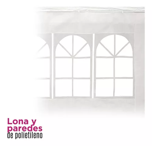 Fabricado con lona de alta calidad y soporte de acero resistente, este toldo es ligero y fácil de transportar, con un peso de tan solo 15 kg. Además, cuenta con protección UV, lo que te brinda mayor seguridad y cuidado para ti y tus invitados.